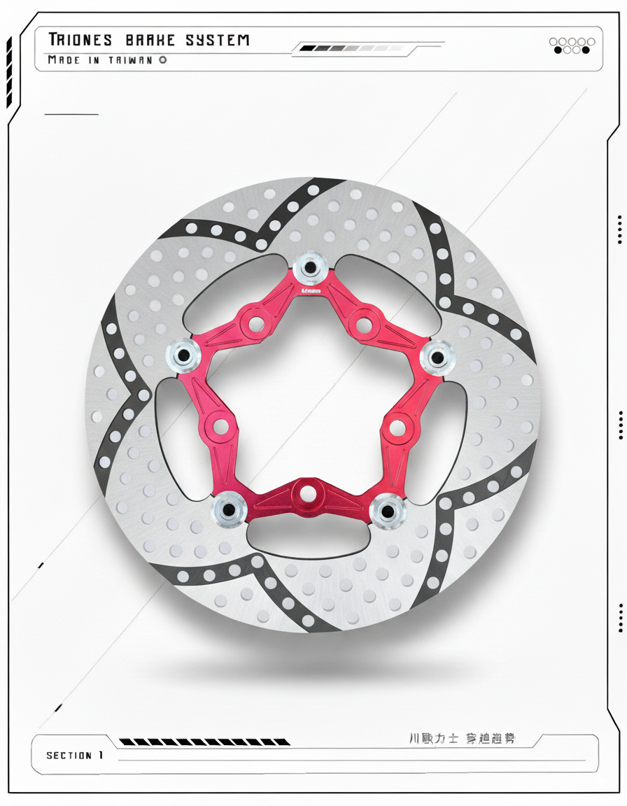 | 產品規格 | 內盤材質:T6 鋁合金 外盤材質:420不鏽鋼 碟盤尺寸:245mm 內盤顏色:黑色、紅色、金色、藍色 (特殊色接受客製),浮動扣出廠為白鐵浮動扣 (可選/黑/金/紅/藍 扣) 另可價升級燒鈦扣 |